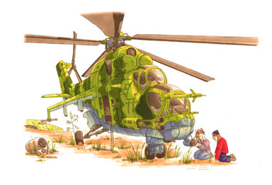 A little something I did to test a few coloring related things, the Junk Rats Gun-Wagon. They are a three woman mercenary group moving around the desert in their jury-rigged guntruck blasting away any enemy they've been paid to liquidate. The truck chassis is an old Soviet military truck which has been modded extensively, most obviously by shortening and elevating the chassis. This gives the truck better power to weight ratio as well as improving the mobility. Other custom fittings include a winch, bigger tires, extra pneumatic tank, custom flatbed with a fixed AA gun, roof rack and storage compartments here and there for various items. Sleeping is often managed whereever possible depending on the situation- on the truck bed beside the gun, in the cabin, under the truck or next to it under a tarp. The AA gun is a vintage twin 37mm AA gun which fires HE rounds from 10 round box magazines of which 10 are carried on the truck. A tarp can be rigged over the flatbed to protect from the sun by hooking it to four poles inserted into each corner.Β