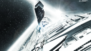 Ares Enterprises military carrier "Deepspace Horizon" releasing waves of orbital landing craft during opening phases of an assault against a rebel planet.Never has an invasion looked as beatiful as in the space age.