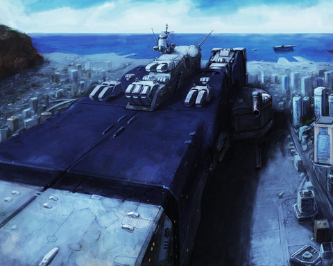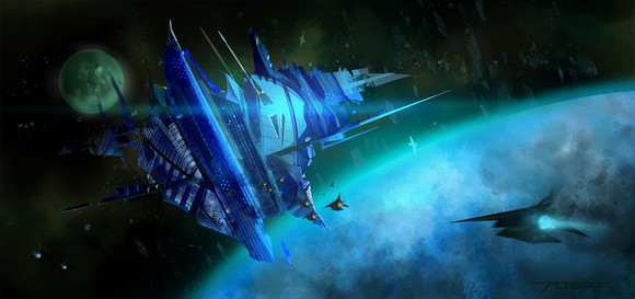 This is a wonderful piece, mate. Damn! I love the atmosphere, blue coloring, composition, ships, everything. This is what I would do if I had the skills!