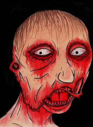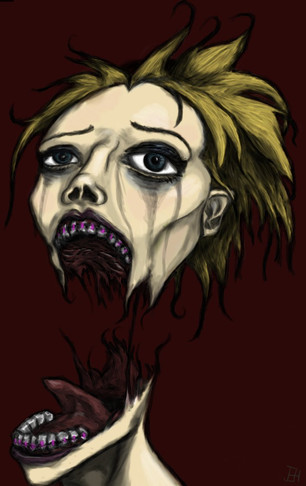 So, the latest sick job in color!I experimented here with using colors for a realistic- looking pic. I guess it's alright. I didn't use any reference for it, like most people do with realistic pics(that's why I like it). And I don't know why she hasn't got any hair. Actually, that was one thing to test if I could make a bald person look like a woman. I guess that went alright too.