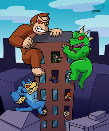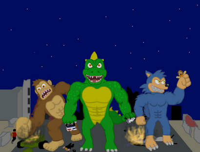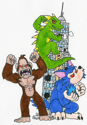 #anthro #female #furry #gorilla #lizard #male #monkey #rampage #wolf #fanartdigital #werewolf #gamingfanart