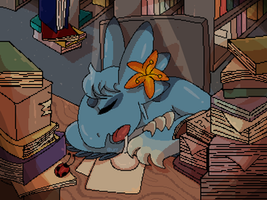 "The library would be a good place to visit to find out more information about his new pet, and and find whether it would eat him in his sleep or not." Demitri thought. He approached a blue dwarf, only to see a flipped table and a sour expression, "Perhaps it would be better to go ask a librarian," he thought as he nervously rubbed his lankit scratched shoulder.Thanks to Rosedraq for letting me borrow Bollo!