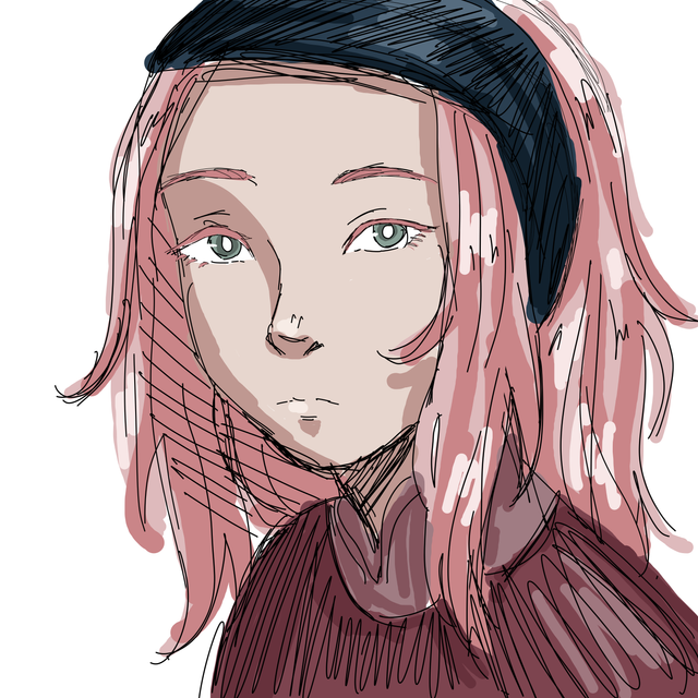 #anime #artwork #digitalart #drawing #pink #sketch #art #medibang #girl #greeneyes