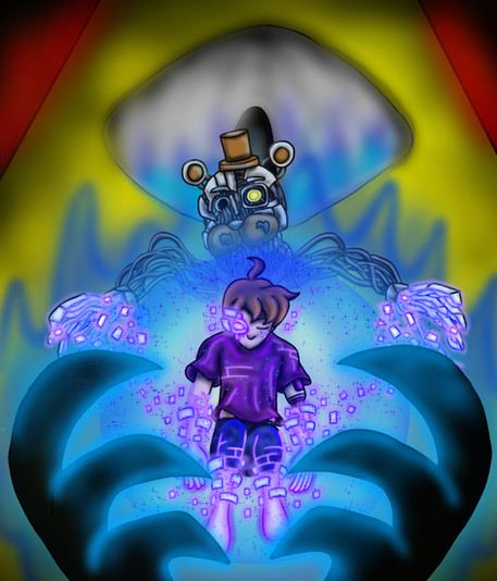 had an idea of another universe where of SB, Freddy and the gang are all hacked, and Gregory can't be Freddy's friend so its up to vanessa and him to try to survive from everyone but vanessa will turn up soon. hope you enjoy! next is mimic and foxy! #fnaf #glamrockfreddy #gregory #fnafart goes to me! hand drawn by me in pixilart an good art website!