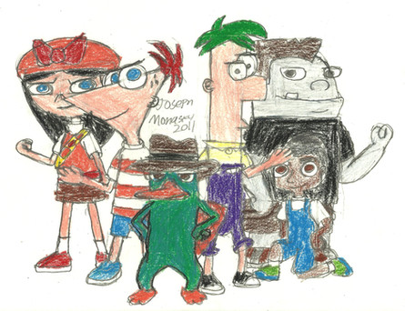 I think you did a great job on the colors and where the characters have been placed, but I also think the characters look a little stiff. Mostly Isabella and Phineas. Like Isabella, when she is throwing the snowball, her right arm is fine, but maybe if you added her left arm in the picture it would look less stiff. Not all of her left arm, but at least her elbow. And Phineas's Right arm looks like it's missing. Aside from that I think you did a great job with colors and where you placed them all. A very good job on this.