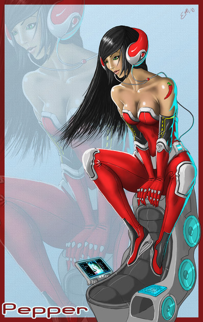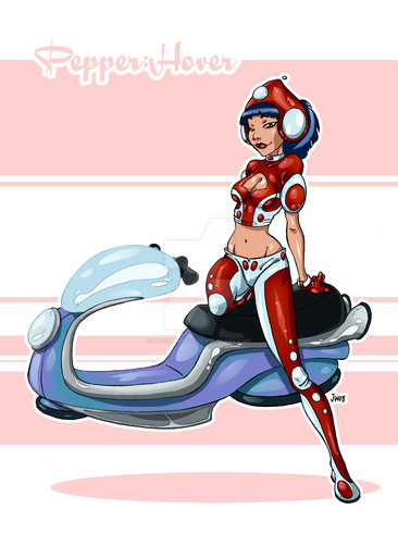 Artwork Description: The first impression i had watching Pepper illustrations was that she liked planes, aviation and flying machines, maybe because of that special hat of her, that reminds me aviators googles and hats... Well, that's why I decided to give her mecha wings !