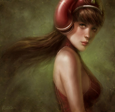 I can almost mistaken this for a real photo. The red bands curving along her hair makes a sexy twist!