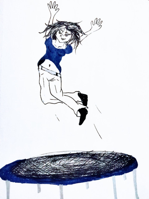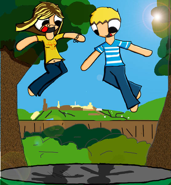 What a cute pic. Trampolines are fun, but my parents won't let me on them anymore.