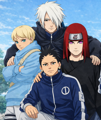 Behold, my concept for the next-generation Team 7 (left>right); Kyouko Uchiha, Metsuki Inuzuka & Takato Uzumaki, with their Jounin Sensei (and former member of Team Naruto) Ryosuke Hiroyuki.Hope you like their designs - I've Been looking forward to posting this for a while now.