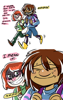 *reaches into screen for the two kids* whatchu think you children are doing bullying frisk like that.... do ya wanna have a BAD time??