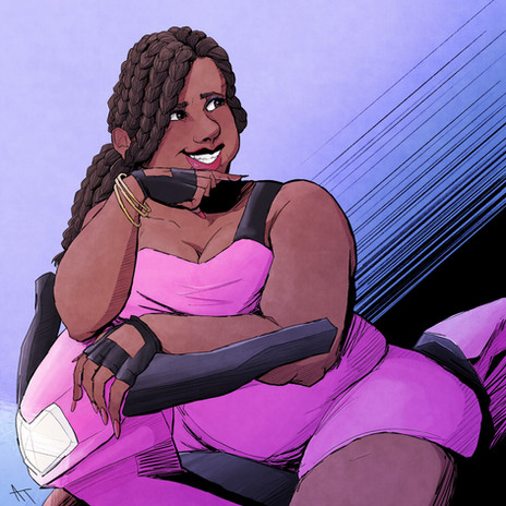 #digitalart #motorcycle #fanart #characterdesign #sunglasses #android #bigboobs #bigbooty #bigbreasts #bigbutt #curvygirl #robotgirl #curvybody #thicklegs #thickandcurvy #guardiantales #thiccgirl