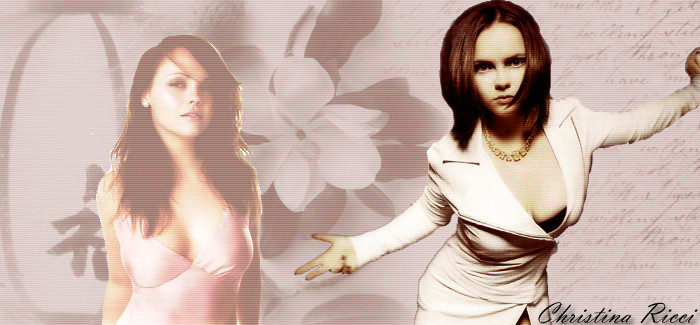 Disclaimer: I do not own Christina Ricci or take these photographs of her. They were taken from a fan site via a search on google.This is a header that I made earlier today. I'm gradually learning blends and hopefully as time progresses I'll further my knowledge. As for the brushes...they were made by various people and right now I have no idea who because, genius that I am, I forgot to save them with the names of the people who created them. If you see your brushes in this image, let me know and I'll credit you.
