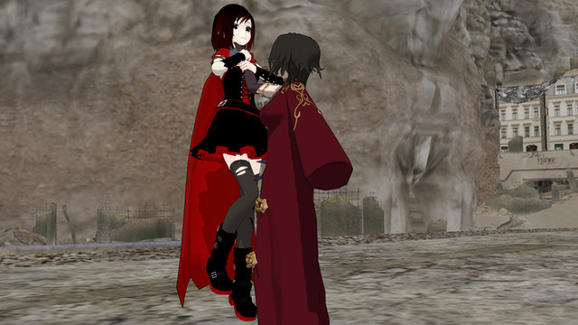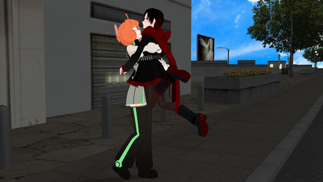 As for this pic here, nothing too out there yet. Just little ol Rukia out and about and she gets a surprise from a friend. After a quick hug, I decided to carry her around and show off my strength. She blushes a bit, but I think she might like it. I know I do. XD
