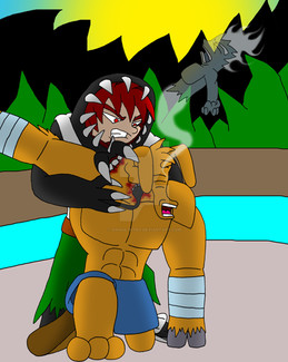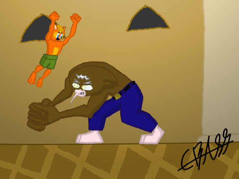 Crunch: Neo Cortex brainwashed me and forced me to harness the Elementals' powers in an attempt to eliminate Crash here. I was about to be the next general of his army called the "Cortex Commandos". If I see that sucka again, I'ma gonna hit 'im so hard, I'ma gon' knock him into next week!