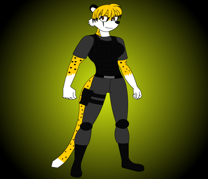 pearl Servarious is a young leopard girl, she shares the same passion as her fellows peers, but they never gave her much of a chance in battle given her age and experience, but overall pearl can conduct herself to be a qualified fighter, she is self trained by observing others, keen and sharp eye with a sniper rifle, spending her free time shooting targets on the rifle range, she also knows how to use a shotgun efficiently, pearl got given a chance to perform at her role when she joined up with Peri, conducting on several missions mostly as a sniper.