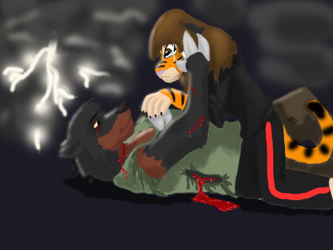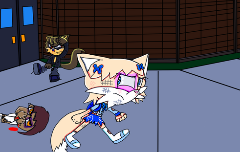 as me and sly where recovering from fighting cortex as he was in a blanket all dirty and cold his cloths torn from his mutant state and me all with bandages when cortex shot me on my ankle with his ray gun and me and sly sat down onto a ambulance bed as a news reporter talk to us what happened when he says.news reporter: Before they took cortex away, police questioned the so-called monsterous raccoon mutant and the blue hair girl that freed him from mutation and mindless slavery but got few answers