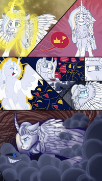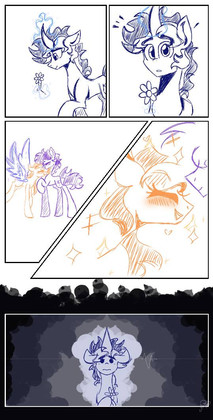 Doing a quick little sketch comic for Bijouterie's origin.We'll find out how my head cannon Rarity got her scars, and what became of Chrysalis after the finale.