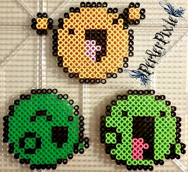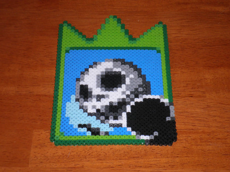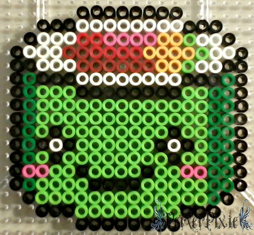 BEWARE THE EVIL WATERMELON AND IT'S CUTE EVIL WATERMELON WAYS! MUAHAHAHAHAAAAA!! Haha, the idea for this is that it's a watermelon but is carved like a Jack-O-Lantern lol. HAPPY HALLOWEEN EVERYONE!!I didn't come up with the designs for this, however I did make the perler as shown. Full credit goes to the original creator(s). If anyone knows who the original creator(s) are, please let me know so that I can give them proper credit.