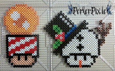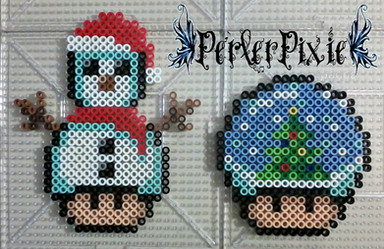 As requested by , here are a couple of cute snowmen mushrooms~ MERRY CHRISTMAS EVERYONE!!I didn't come up with the designs for these, however I did make the perlers as shown. Full credit goes to for making the original pixel sprites! You guys should check out all the sprites he's made! THEY'RE SUPER AWESOME!!