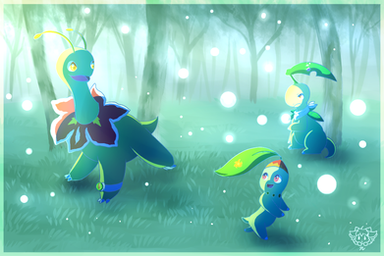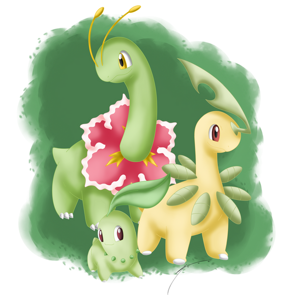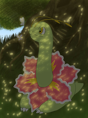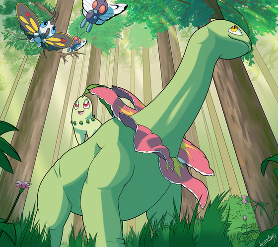 #couple #cute #meganium #pokemon #rain #umbrella #tropius #perotibia