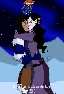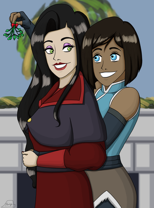 I had an idea to make a Korrasami pic with mistletoe, so here it is!Korra and Asami belong to Michael Dante DiMartino, Bryan Konietzko, and Nickelodeon.