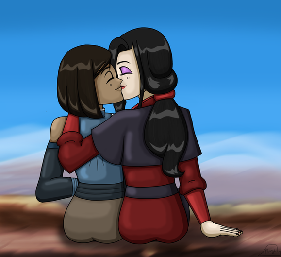 Korra grabs Asami and then starts kissing her.