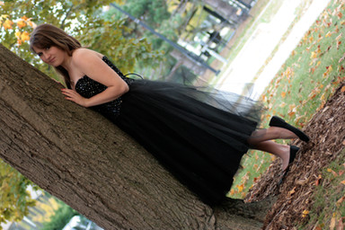 Cool, artsy shots! I love her pose and dress in this one.
