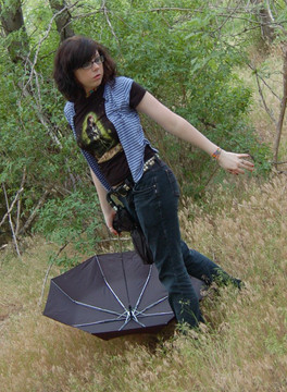 So, Miranda was walking to my house when she found this chair on the side of the road. A sign said it was free, so I figured that it wouldn't be a problem if we took some photos there for a bit.Rules in Journal.