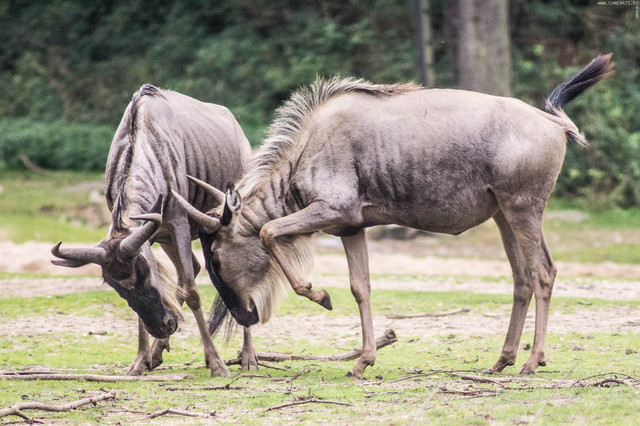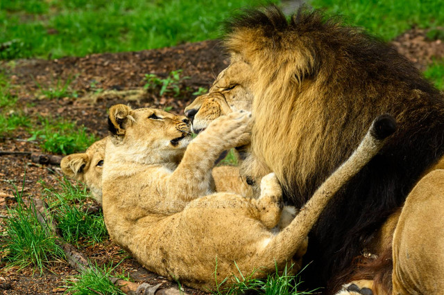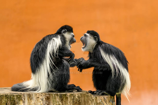 I especially enjoy with this shot, how it comes off as a sculpture, the rocks they are standing on as its base... And the theme, 'father teaching son how to fight'..Β Adorable and amazing; fine photography at its best!