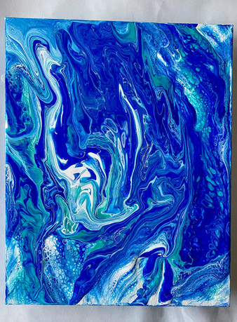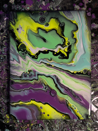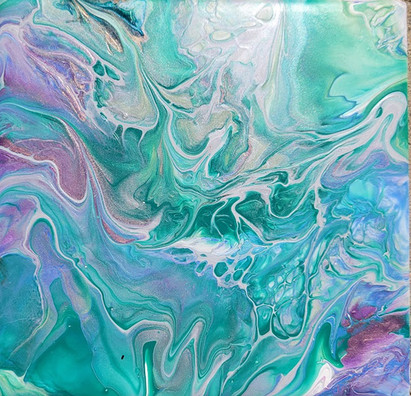 My first attempt at a jiggle pour with no silicone. Had some trouble tilting the top-right corner and I wish I'd tilted just a little more off the top and bottom left corners. I still like how it turned out though.Fresh color scheme. The silver I use is one of my few non-Amsterdam paints. It tends to disperse a lot so it mostly gets lost as a layer but it does create a nice, glittery sheen. So it has its uses.