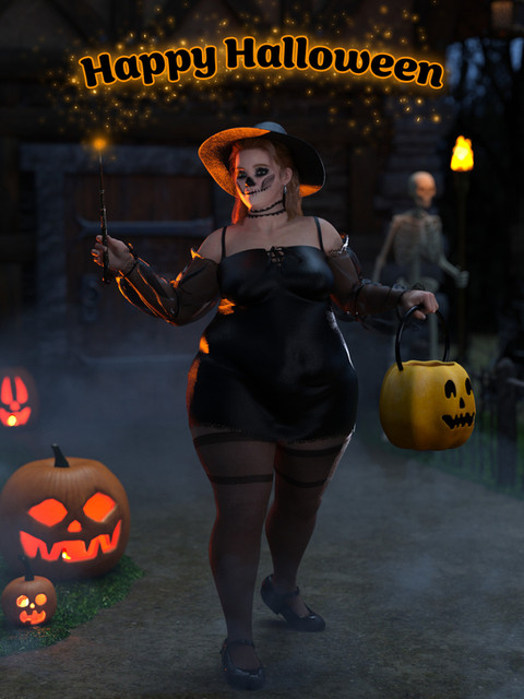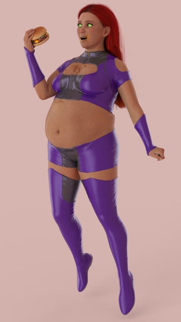 She's not bad, she's just drawn that way. But she definitely is fat, not just drawn that way.I was mostly just testing out another model. I really like the effects on the outfit and how her shape turned out once fattened up.