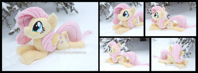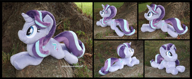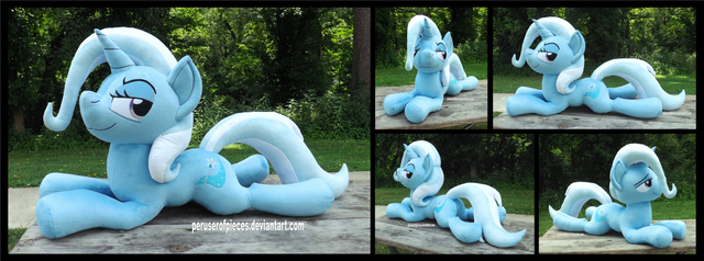 All of my beanies are around 8-9 inches tall, and about 12 inches long from hoof to hoof (princesses are just a wee bit bigger). The heads and bodies are stuffed normally, while the hooves contain weighted poly-pellets to help them stay balanced on your shoulder while walking around. They're the perfect-sized travel buddy, they fit neatly inside a carry-on luggage, and they also look super-cute riding in a messenger bag.