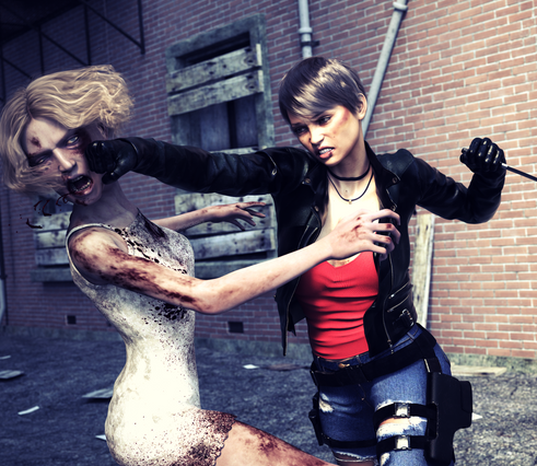This is so awesome! I love how Angel's stance and expression are looking so bad-ass and telling the advancing zombie to come at her.