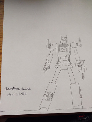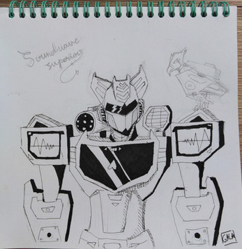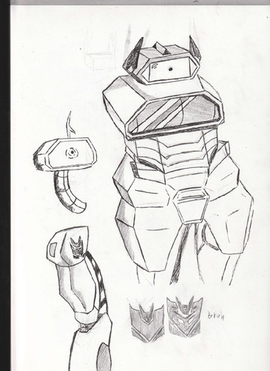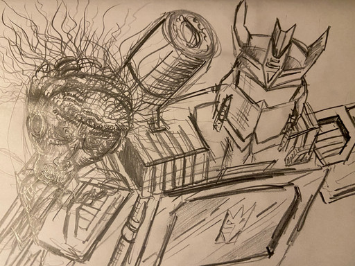 This is a doodle of Rumble and Soundwave (and Laserbeak in the back). Compared to my earlier doodles, this one looks more cartoony, probably from the lack of detail.Related content
