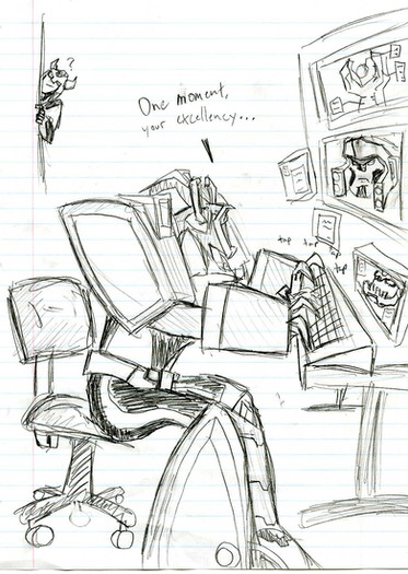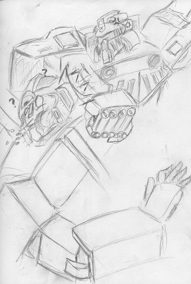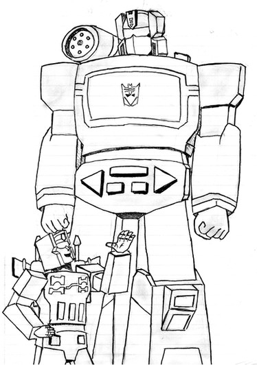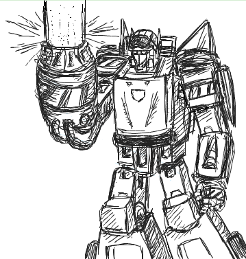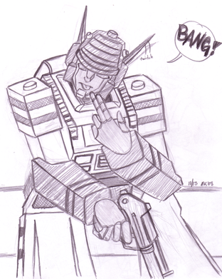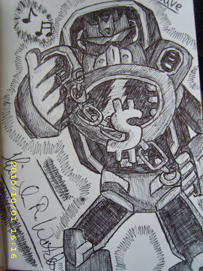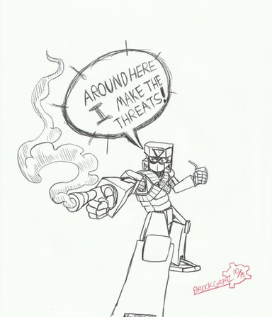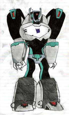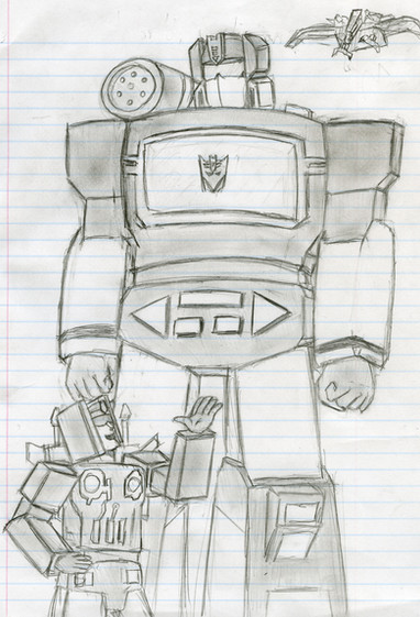 I also tried to draw Starscream in a chibi-ish way in this, but I ended up not making him look good at all. So after many erasings later, the hard lines wouldn't come out of the page. You can still see him a little.
