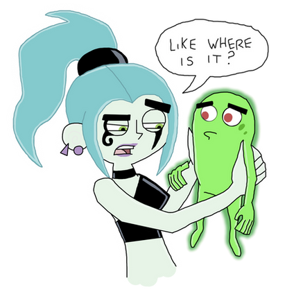 My two favorite musically inclined ghosts, united in their disapproval of each other's genres.Y'see, in my mind, Ember (Danny Phantom) and Del (Gorillaz) wouldn't get along very well. And if you knew anything about Gorillaz, you'd know why.