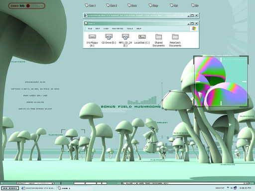 Rusty: thanks for the comment. The shell is skinned with StyleXP, using the 'FatalE' visual style. The Mac style icons along the top is a program called Y'z Dock (for XP only) to give it a Mac look, then you convert any of your 128x128 icons to .png files. Nice little program. The Ram/CPU/HDD Space meters were done with a program called Samurize (XP / 2000 only). Another nice, handy program.