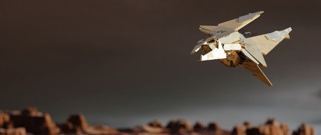 The Sparrow, a long range interceptor, at the landing strip.Made in Blender.
