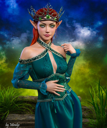 Same scene as my previous render Elf Queen 2 . I just replaced the queen with the princess, and changed lighting and camera a tad. Changed a few things with the princess, but definitely prefer this look over the previous render of her. Check out the previous render of the princess here .