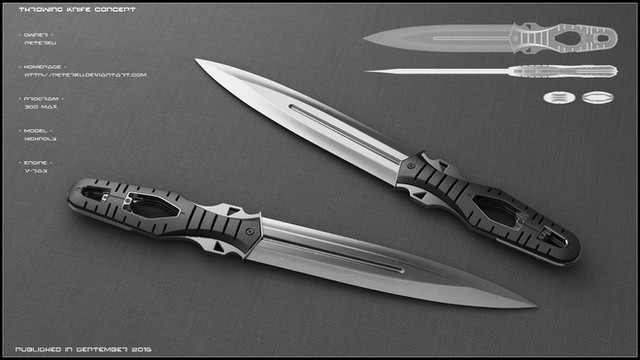 That's some cutting-egde work right here if you know what i mean. If it's sharp enough to slice a tomato in half than it's a solid piece of artwork. I get alot of peterku's fancy sic-fi artwork. I like him! He has the best laser weapons in his art gallery. His collection of guns are cool enough to be in a space intergalactic film filled with aliens and spaceships. The Knife picture is a well articulated piece of art. If i added 95% of his laser guns into my faves, there's no way that i will criticize this! Well Done!!!
