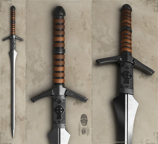 Pěkný sice to vypadá nepohldně ale desing je pěkný, jak se tak dívám tak máš pořád stejný styl designu u všechn mečů (skoro). Meče sou lehký na modelování a pěkný na render, ale nejtěžší je dostat ten nápad, kde je to bereš ?