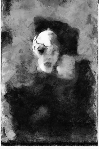 Multiple exposure with different focus-points. Longer exposure time. Black & white. Tinted version. Multilayer of textures and structures in darkroom. Finishing by Photoshop. ---