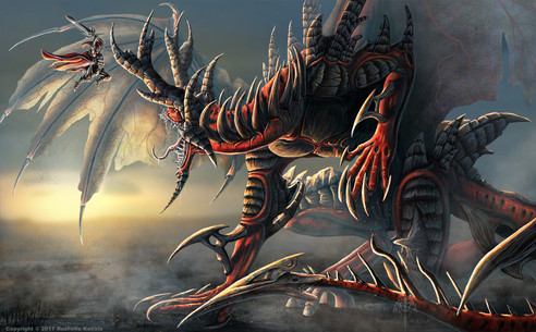 Really cool! Like the multiple arms. I thought the dragon was a mech at first, which would be a cool take on such myths. Reminds me of beetles, xenomorphs, and evangelion. You and eddie-mendoza should collaborate, you have some similar aesthetics!