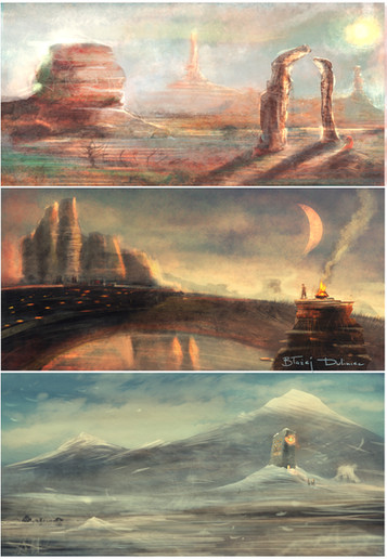 I really love those, the one at bottom reminds me of Halo, the one at the top is really nice too- just love the guy alone in all that sand, yet my favourite is the one in the middle. It looks so peaceful and somehow its still exciting to look at it, like it is from an alien planet.