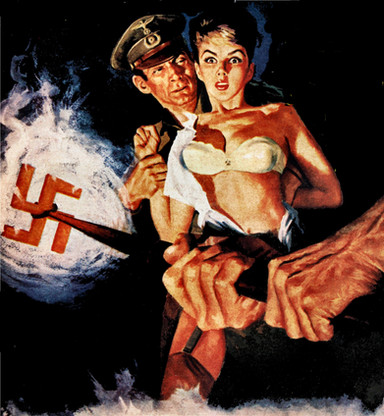 actually no...this is excerpted from a larger picture in which she is being brought down stairs to some Nazi doctor who is already experimenting on another woman