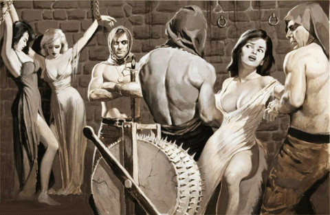 He will place stones on her, until she is crushed to death, then go to work on the one hanging in the background.