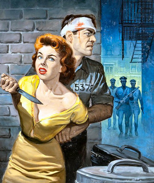 Cover art from El Pasao De Betty Bell (loosely translated as "The Passing Of Betty Bell," or perhaps "The End Of Betty Bell"), a 1981 novel by Clark Carrados. Published by Bolilibros Servicio Secreto, No.1620. Clark Carrados is one of the pseudonyms used by Luis Garcia Lecha (1919-2005), an amazingly prolific writer of over 2000 (!!!!!) Spanish-language novels and movie scripts across a number of genres. He was based in Barcelona, and in the 1960s wrote a lot for Bruguera, a huge company that produced almost everything written for the Spanish-speaking world.