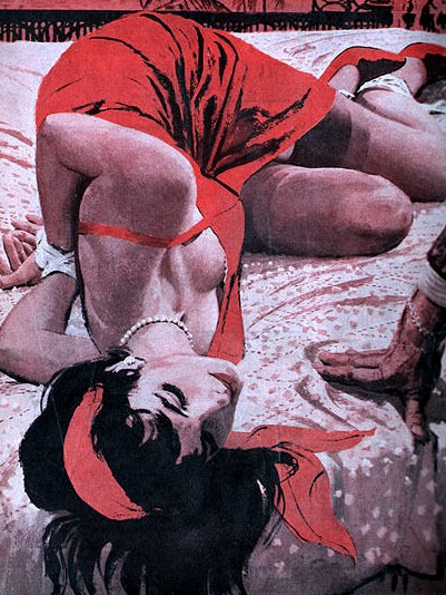 One would hope that the guy is about to take her hairband scarf and gag her with it...