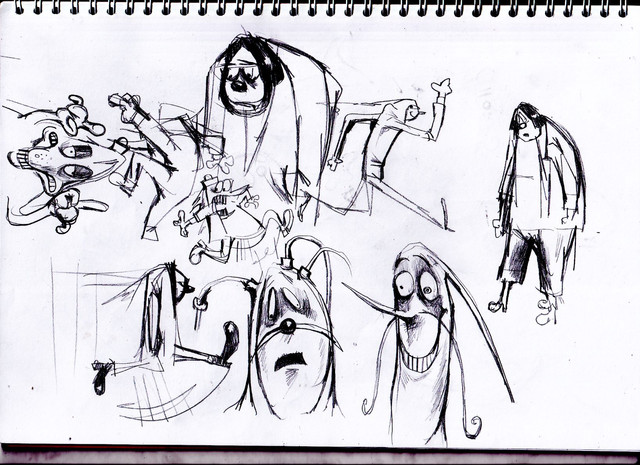 Good So far I have drawn a turn around for a strange cartoony rabbit that has a simple Skull marking (Similar to Grims skull in the grim adventures of billy and mandy) It has sort of gorilla arms with claws and little bunny feet so the frount harf is bigger then the back half. The other turnaround is of a cutsie fish with an eye patch and a single large eye (inspired by a gold fish I had years ago called goldylocks who had one eye)