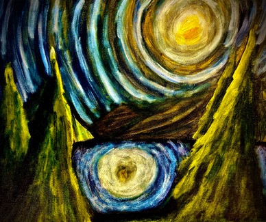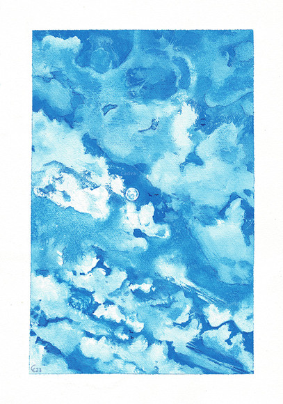 Soft pastels, varnish, fixative on Pastelmat paper 70x50cm 2022The inspiration for this painting were the photos by Andrea Rossetti. They presented installations created by Pamela Rosenkranz, exhibited on the SUN RISE | SUN SET group exhibition at Schinkel Pavillon in Berlin.